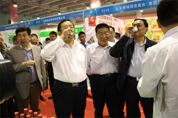 會(huì)展期間,聊城市委副書(shū)記、市長(zhǎng)王忠林一行,參觀了正信“綠業(yè)春”調(diào)味品展示區(qū),與我公司的工作人員深入交談,詳細(xì)的了解“綠業(yè)春”調(diào)味品生產(chǎn)以及公司運(yùn)行現(xiàn)狀。并現(xiàn)場(chǎng)品嘗了“綠業(yè)春”米醋,對(duì)其口感給予了高度的評(píng)價(jià)。