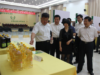 (集團(tuán)董事長榮長遠(yuǎn)向陳書記介紹“綠業(yè)春”調(diào)味品)