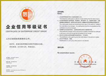 山東正信招標有限責任公司榮獲“企業信用3A等級證書”