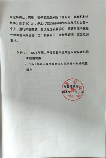為規范招標代理機構執業行為,冠縣財政局對2021年第二季度在冠縣執業的政府采購代理機構進行日常監督考核工作,在嚴格規范的考核下,山東正信招標有限責任公司排名第一,進一步展示了專業技術能力和綜合實力。