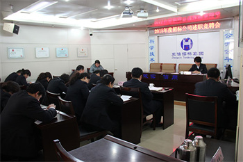 招標公司各處室、部門負責人首先對14年的工作情況、任務完成的情況、管理工作情況、集團公司規章制度執行情況等進行了逐一匯報。匯報的內容充分體現了各業務處室人員在14年的辛勤勞動和付出;其次,中層以上人員以及競聘中層職位科員積極的進行了競聘演講。
