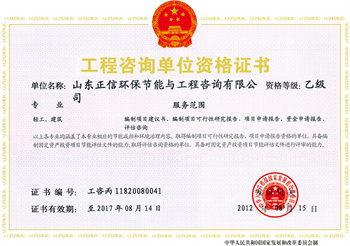 目前,山東正信環保節能與工程咨詢有限公司新的資格證書已經發放,內容涵蓋乙級的輕工、建筑專業,丙級化工、紡織,生態和環境工程,機械、農業、市政公用工程(給排水)專業,具體包括: