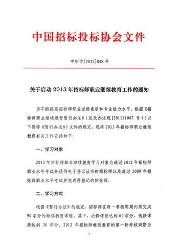 關于啟動2013年招標師職業(yè)繼續(xù)教育工作的通知